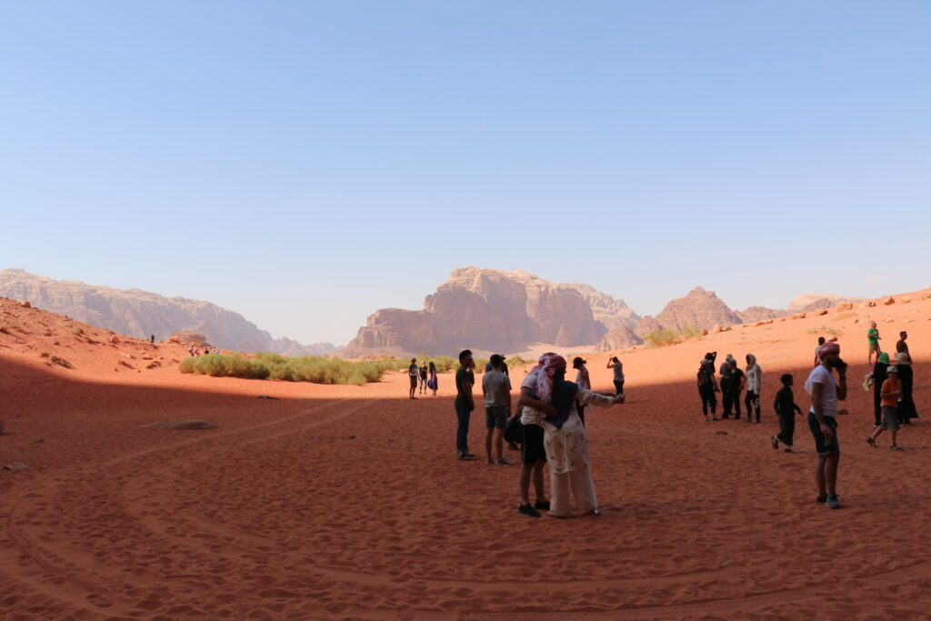 Later, we organized a group trip to Wadi Rum, one of Jordan’s most remarkable natural and historical sites. We explored its landscapes, learned about its history, and spent memorable moments together—taking photos, watching the sunset, and enjoying dinner inside a traditional Bedouin tent, the symbolic home of the desert’s people.
